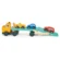 This car transporter wooden vehicle toy by Mentari has 3 different coloured cars.