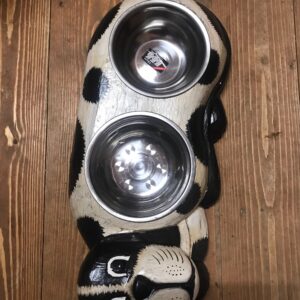 Wooden Handmade Brown Dog Double Pet Food & Water Bowls. Fair Trade. Hand Carved,
