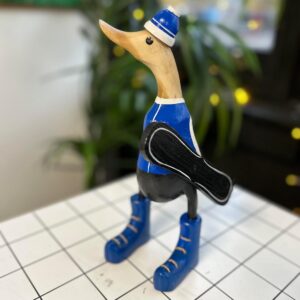 Handmade Wooden Snowboarding Duck Figurine, 27cm, Blue. Fair Trade, Handmade.